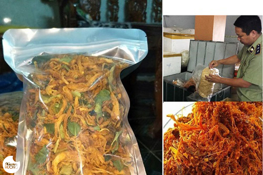 Thời gian gần đây, có rất nhiều trường hợp bị ngộ độc do ăn phải thực phẩm khô kém chất lượng, đặc biệt thịt bò khô. Nguyên liệu được dùng để chế biến thịt bò khô ở đây là phế phẩm từ lòng bò, thịt bò kém chất lượng thu mua từ các chợ với giá rất rẻ. Phế phẩm này được ngâm tẩm hóa chất, trộn với nhiều loại nguyên liệu, gia vị, phụ gia không rõ nguồn gốc để chế biến thành khô bò. Thịt bò khô được bán la liệt ở các sạp với giá chỉ từ 150 - 400 nghìn đồng/kg, tùy loại bò khô nguyên miếng, dạng que hay xé sợi nhỏ.