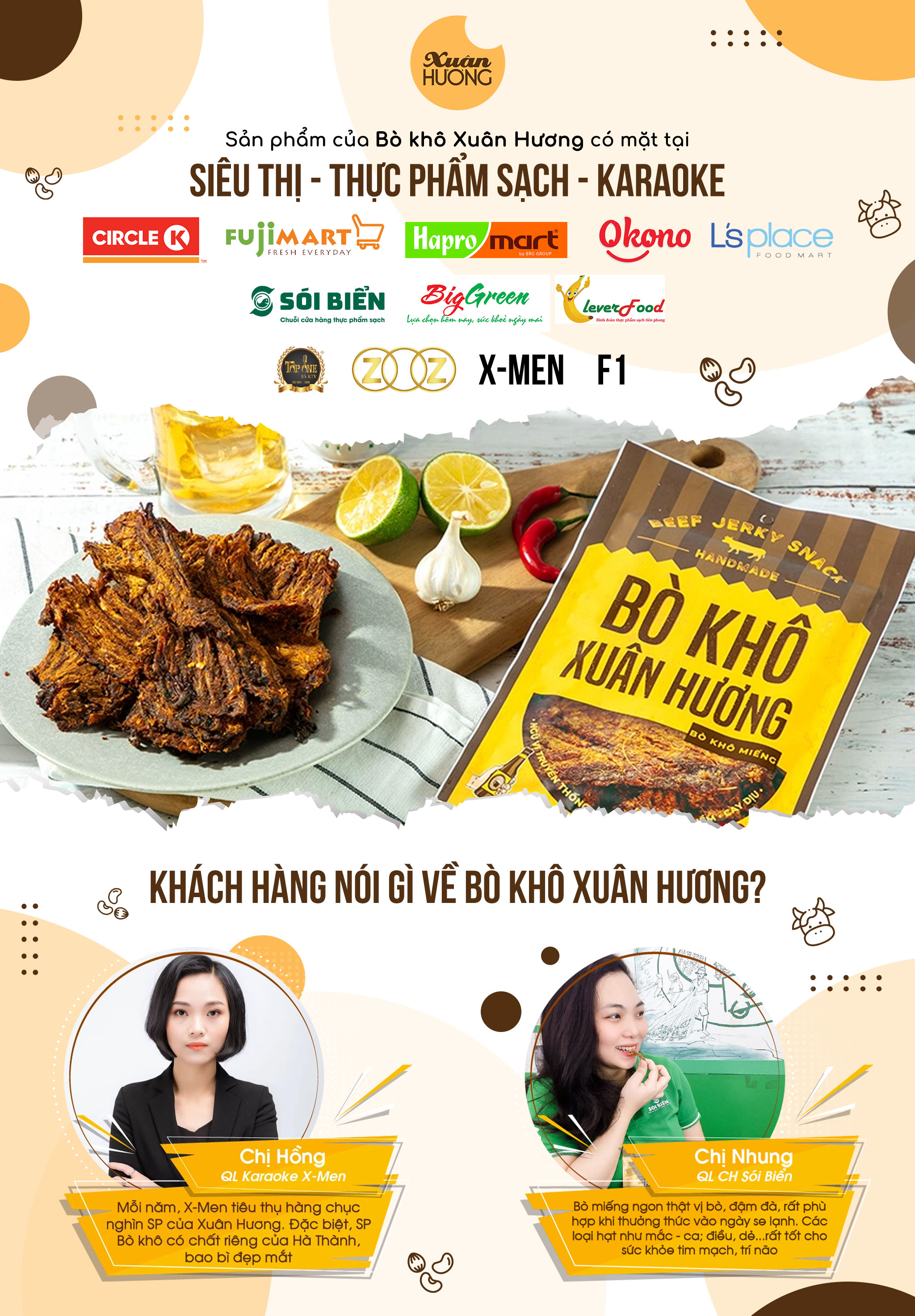 Cùng với việc duy trì những nguyên tắc chất lượng nghiêm ngặt, bò khô Xuân Hương đã xây dựng được một thương hiệu vững chắc và niềm tin từ phía khách hàng. Sản phẩm của Xuân Hương không chỉ được phân phân phối rộng rãi tại Việt Nam, mà còn được xuất khẩu đến nhiều quốc gia trên thế giới. Sự đánh giá cao về chất lượng và hương vị của bò khô Xuân Hương đã thu hút sự quan tâm của các đại lý và khách hàng trên toàn cầu, bao gồm siêu thị, cửa hàng tiện lợn, nhà hàng, khách sạn, karaoke...
